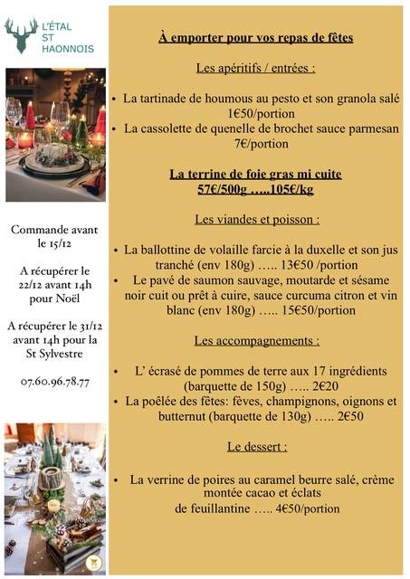 Bienvenue à L’Étal St Haonnois, votre restaurant à Saint-Haon-le-Vieux, idéalement situé à la place François Grangier, dans ce joli village de la côte roannaise, à deux pas de Renaison et de Saint-Haon-le-Châtel. Que vous soyez de Saint-Haon-le-Vieux, de Saint-Germain-Lespinasse ou même de Roanne, venez découvrir une cuisine du monde dans un cadre chaleureux, familial et convivial.